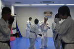 先月の昇級審査を受けた子達は、今日から帯の色が変わって嬉しそうに稽古を頑張りました。