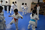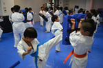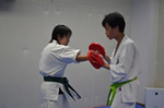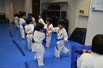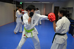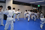 合同クラスでは、中段突きと下段回し蹴りの当てるポイントと角度について重点的に稽古しました。