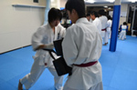 大阪南支部の巻渕温輝初段は中学1年生ながら毎週頑張って組手クラスに通っています。