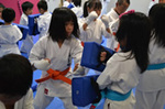 横蹴りや後ろ蹴りなどの直線的な蹴り技の練習をミットで行いました。