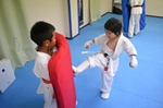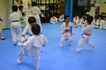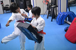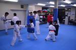 少年クラスでは、特に組手に時間を割いて相手を変えながら何セットも行いました。