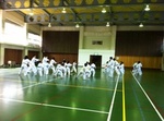 全体で稽古した後、帯ごとに別れて稽古しています。