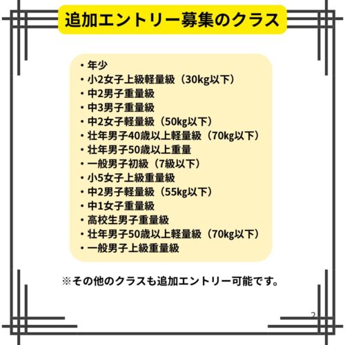 追加エントリーのお申込みにつきましては、