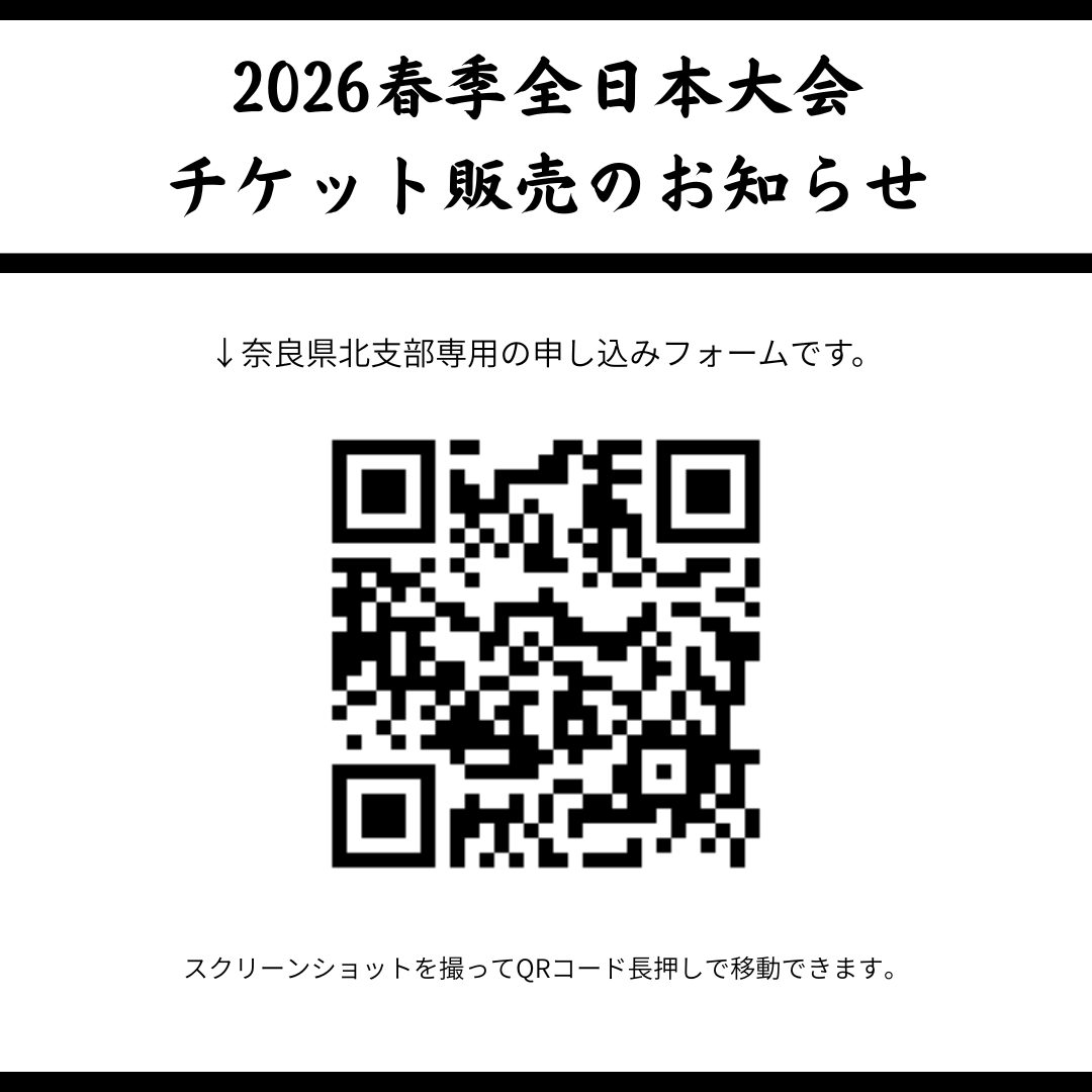 ※奈良県北支部専用です。 チケット購入を希望される方は以下のフォームよりお申込み下さい。 ◇お申込み期限:4/3(金) ◇ チケットの種類:・全席自由 4/11(土)/1,000円 4/12(日)/1,000円チケット代はお申込み後の稽古に来られた時に現金でお支払い下さい。 ※小学生以下無料 ※チケットはすべて買い取り...