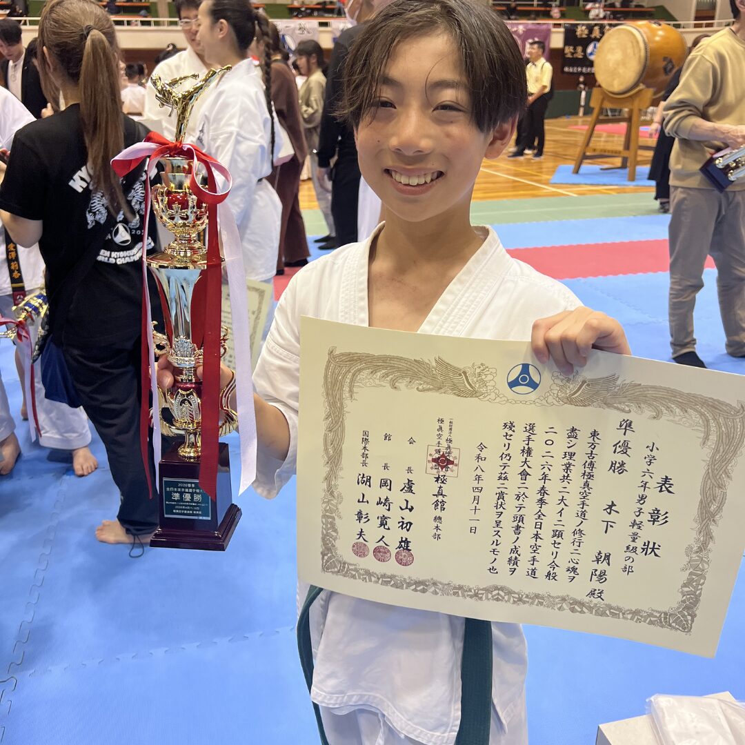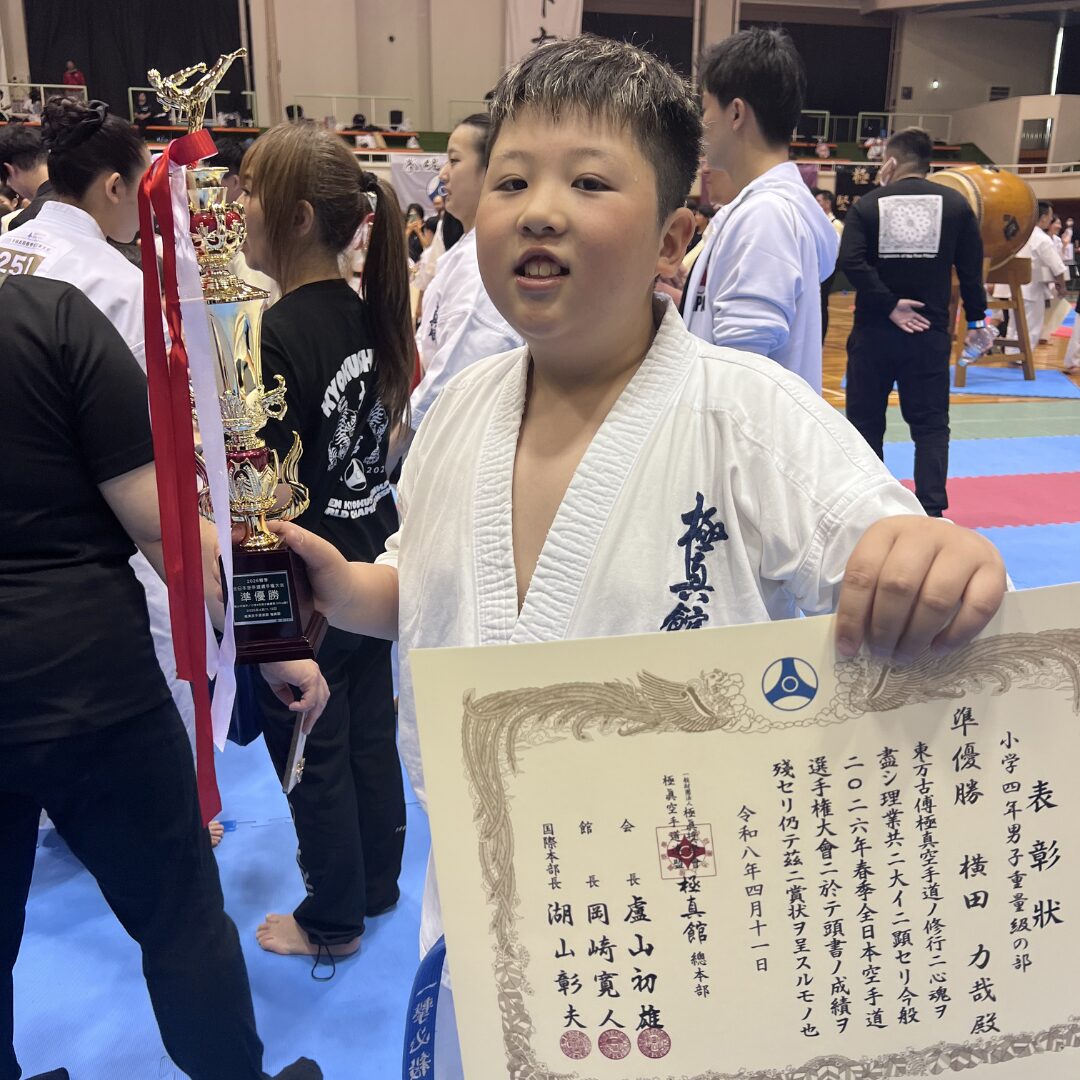 2026極真館春期全日本大会1日目(2026/4/11土) 大会結果 2026.04.11 本日、埼玉県戸田市スポーツセンター「2026極真館春期全日本空手道選手権大会」が開催されました。 奈良県北支部から出場した選手が入賞しました! ◾️小4男子重量級 🥈準優勝 横田力哉(生駒) ◾️小6男子軽量級 🥈準優勝 木下朝陽(桜井) 2人ともおめでとう! 明日は奈良北から6名が出場します。 結果を恐れず精一杯頑張りましょう! 共有: X で共有 (新しいウィンドウで開きます) X Facebook で共有 (新しいウィンドウで開きます) Facebook いいね:いいね 読み込み中… 関連