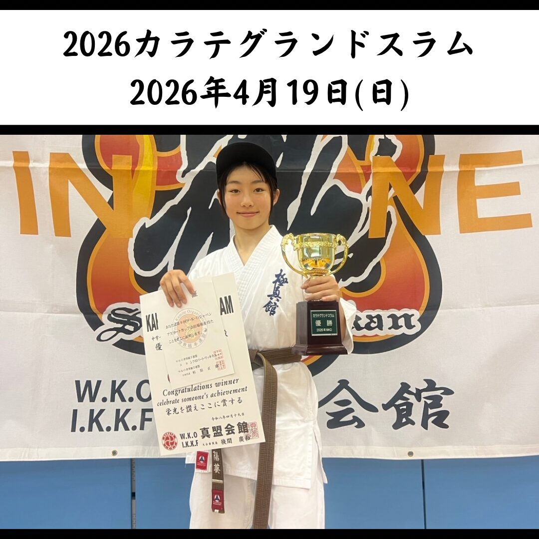 2026カラテグランドスラム(2026/4/19日) 大会結果 2026.04.19 本日、岸和田総合体育館で開催された真盟会館様主催の「ジャパンアスリートカップ選抜大会カラテグランドスラム2026」に出場した桜井道場の木下陽葵ちゃんが見事優勝(中1女子軽量級)しました。 おめでとう! 共有: X で共有 (新しいウィンドウで開きます) X Facebook で共有 (新しいウィンドウで開きます) Facebook いいね:いいね 読み込み中… 関連