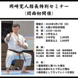5月17日(日)大阪で岡崎寛人館長特別セミナーが開催されます。 関西では初の開催となります。 館長の稽古を受けられる貴重な機会です。 特に上級者の人はこの機会を逃さないように必ず参加しましょう! 参加する人は各道場の先生にお知らせ下さい。 ...